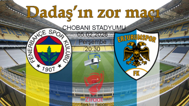 Ziraat Türkiye Kupa Maçında Fenerbahçe ile Erzurumspor karşı karşıya gelecek. Maç 5 Şubat Perşembe 20.30'da