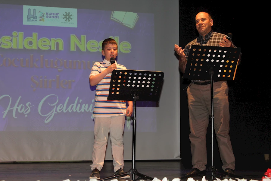 “Nesilden Nesile Çocukluğumuza Şiirler” adlı geceye isim katan ve unutulmaz anların yaşanmasına vesile olan, geleceğimizin büyükleri çocuklarımız ve onların ailelerinin katılımlarıyla birlikte, Erzurum Büyükşehir Belediyesi Genel Sekreteri Zafer Aynalı, Erzurum Büyükşehir Belediyesi Kültür ve Sosyal İşler Daire Başkanı Ergün Engin, Türkiye Yazarlar Birliği Erzurum Şube Başkanı Memet Gözütok, TYB Erzurum Şubesi üyeleri ve Yönetim Kurulu, TYB Erzurum Şubesinin onursal başkanı olarak nitelendirilen ve bu tür kültür faaliyetleri esnasında her daim emeği olan M. Hanefi İspirli koordinatörlüğünde hazırlanan farklı ve bir o kadar da anlamlı olan gecede, İbrahim Erkal Dadaş Kültür ve Sanat Merkezi Salonu çiçek bahçesine döndü. Her bir çocuğumuzun nadide bir çiçeği andırdığı, rengiyle, kokusuyla, şiir adında ve şiir tadında bir lezzet bırakarak hafızalarda yer aldığı gecede doyumsuz bir şiir dinletisi yaşandı.